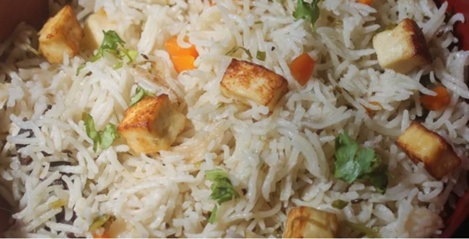Our Paneer & Veg Pulao is a fragrant, one-pot Indian rice dish made with aromatic spices and mixed vegetables with Indian Cheese. Mildly spiced and flavorful, it is a staple comfort food that can be enjoyed on its own or paired with a side dish. A half-pan tray of Paneer & Vegetable Pulao typically serves approximately 10 to 15 people, depending on the specific portion sizes. This portion size is common for catering, where the half-tray serves as a side dish or a main component for a smaller group.