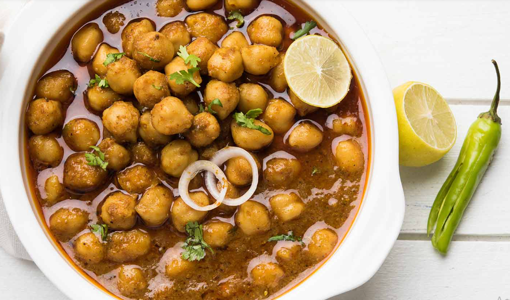 Vegan Chana Masala Curry is a smooth Chickpea or Garbanzo beans curry cooked in onions spices, ginger turmeric cumin, garlic Nut & Gluten free